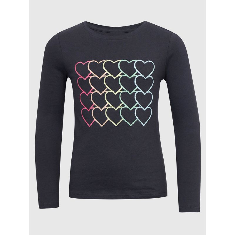 Dětské tričko s dlouhým rukávem. Na přední straně potisk srdíček. Kulatý výstřih ke krku. Měkký bavlněný úplet.