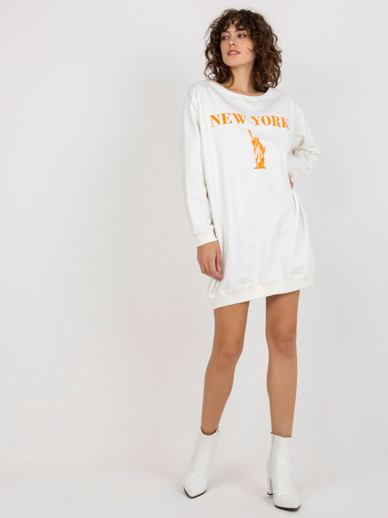 složení materiálu: 70% bavlna, 25% polyester, 5% elastan způsob praní: ruční praní one size volný střih nápis "New York" Rozměry jednovelikostní mikiny měřeny naplocho: šířka v podpaží - 67 cm, délka rukávu - 55 cm, celková délka - 84 cm.