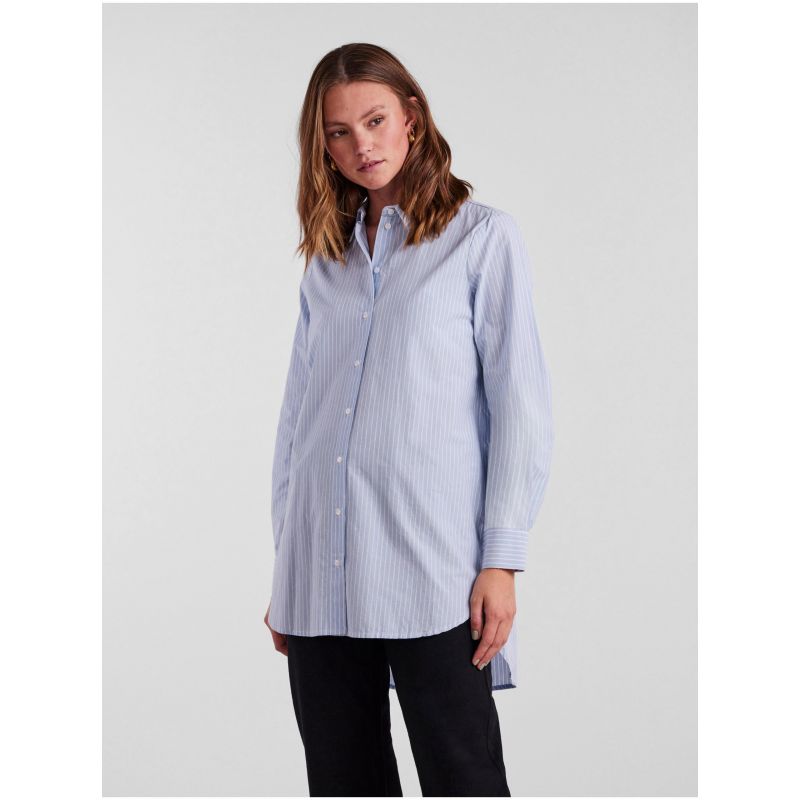 Světle modrá dámská pruhovaná oversize košile Pieces Jiva - Dámské