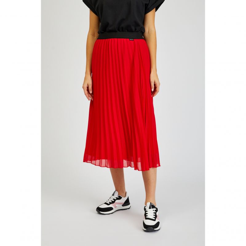 Plisovaná neboli skládaná sukně patří mezi naše hvězdy této sezóny. Sukně má bezesporu výhodu, a to je pružná guma v pase, která vás nebude stahovat. Doporučujeme kombinovat s jednoduchými (bílými) tričky a Modelka má na sobě velikost S a její míry jsou: obvod hrudi - 84cm, obvod pasu - 62cm, obvod boků - 88cm. teniskami.