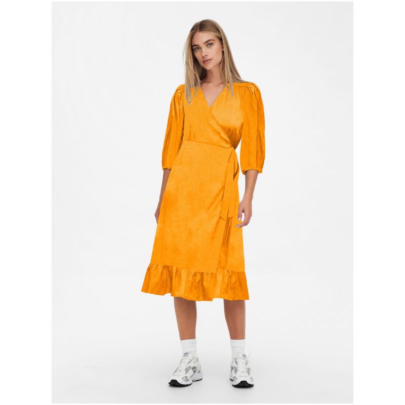 Oranžové dámské saténové zavinovací midišaty ONLY Olivia - Dámské
