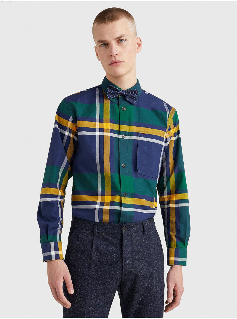 Modro-zelená pánská vzorovaná košile Tommy Hilfiger - Pánské