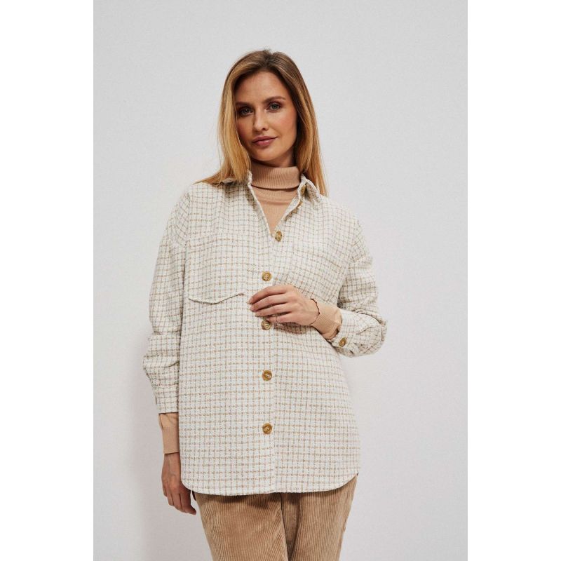 Zamilujte se do detailů této mimořádné košile od Moodo. Vyrobeno ze 100% polyesteru, poskytuje vynikající trvanlivost a odolnost proti mačkání. Oku lahodí především jeho jemné barvy, konkrétně krémové pozadí ladící s jemným béžovým kárem. Je to perfektní kombinace stylu a pohodlí při nošení, bez ohledu na příležitost. Přední část košile je zdobena dvěma kapsami v úrovni hrudníku, které jsou nejen praktickým řešením, ale také dodávají charakter. Vzadu ve výšce lopatek je prošívání a ozdobné řasení, které potvrzuje pečlivé zpracování výrobku. Velké hnědé knoflíky jsou nejen funkční, ale také stylový detail. Když přemýšlíme o této košili, mluvíme o kombinaci kvalitních materiálů s dokonalým střihem. Proto pohodlný styling Created by Moodo je produkt, který uspokojí i ty nejnáročnější ženy.