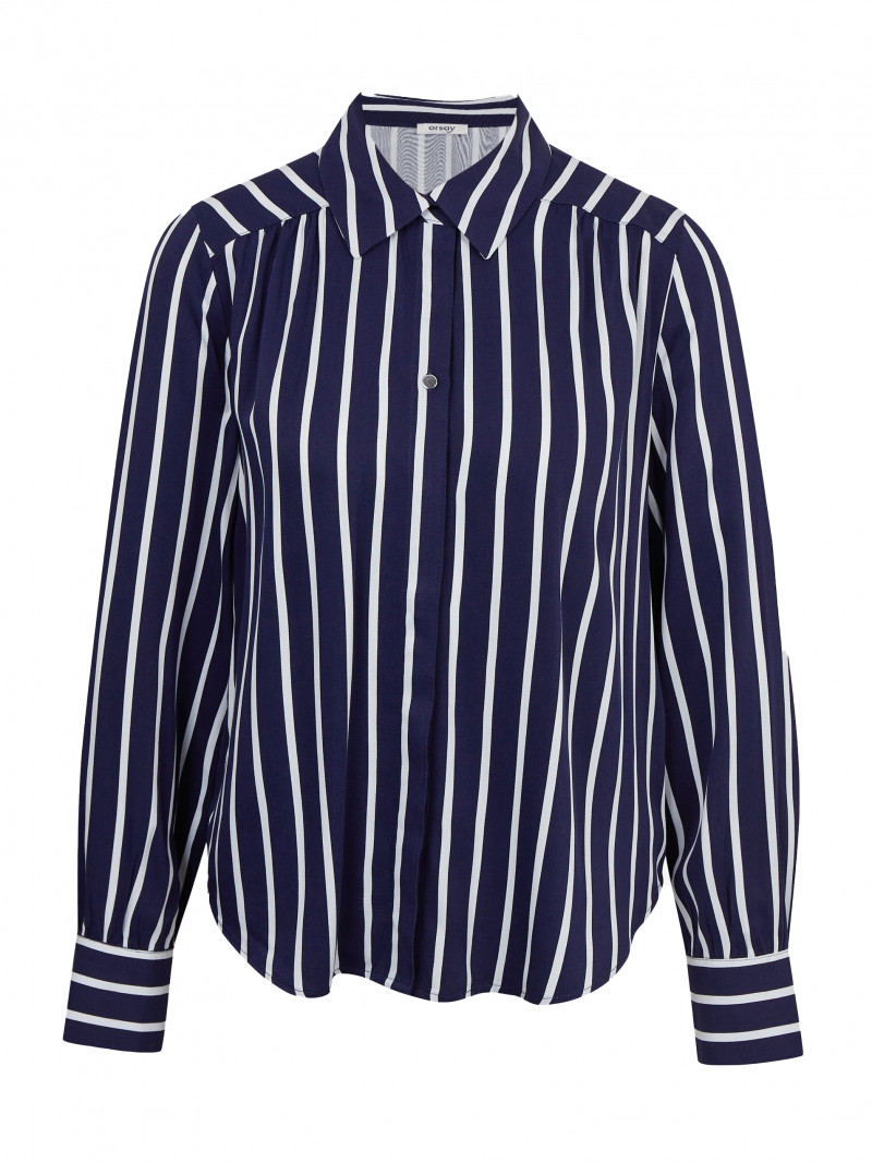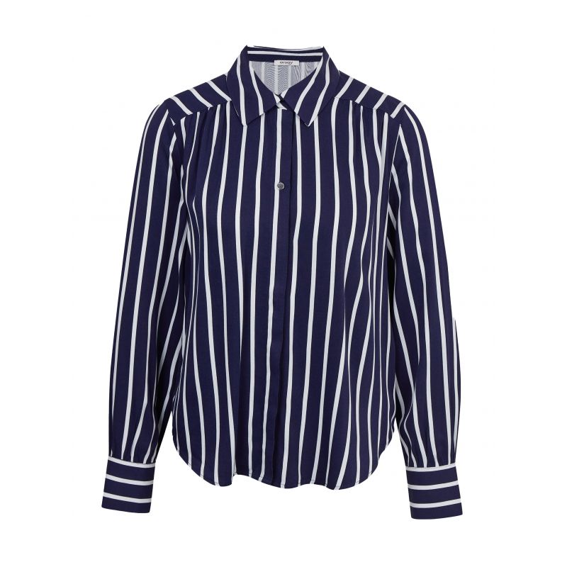 Barva: tmavě modrá, bíláVzor: pruhovanýStřih: regular fitVýstřih: s límečkemRukáv: dlouhýZapínání: knoflíkMateriál: 100 % viskózaModelka měří: 177 cmModelka má na sobě velikost: S