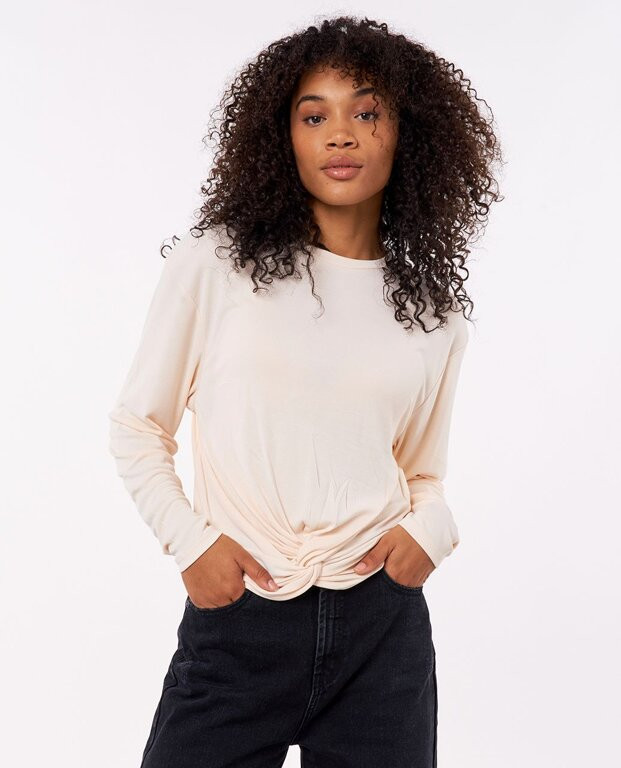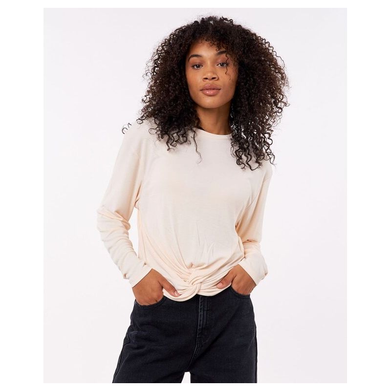 Dámské tričko LS Soft Rib Tee Tričko Light Peach ve světlé meruňkové barvě, s překříženým spodním lemem. Tričko je vyrobeno z jemné ekologické směsi modalu a polyesteru. Kombinujte ho se stylovými černými kalhotami! Nová kolekce Rip Curl.
