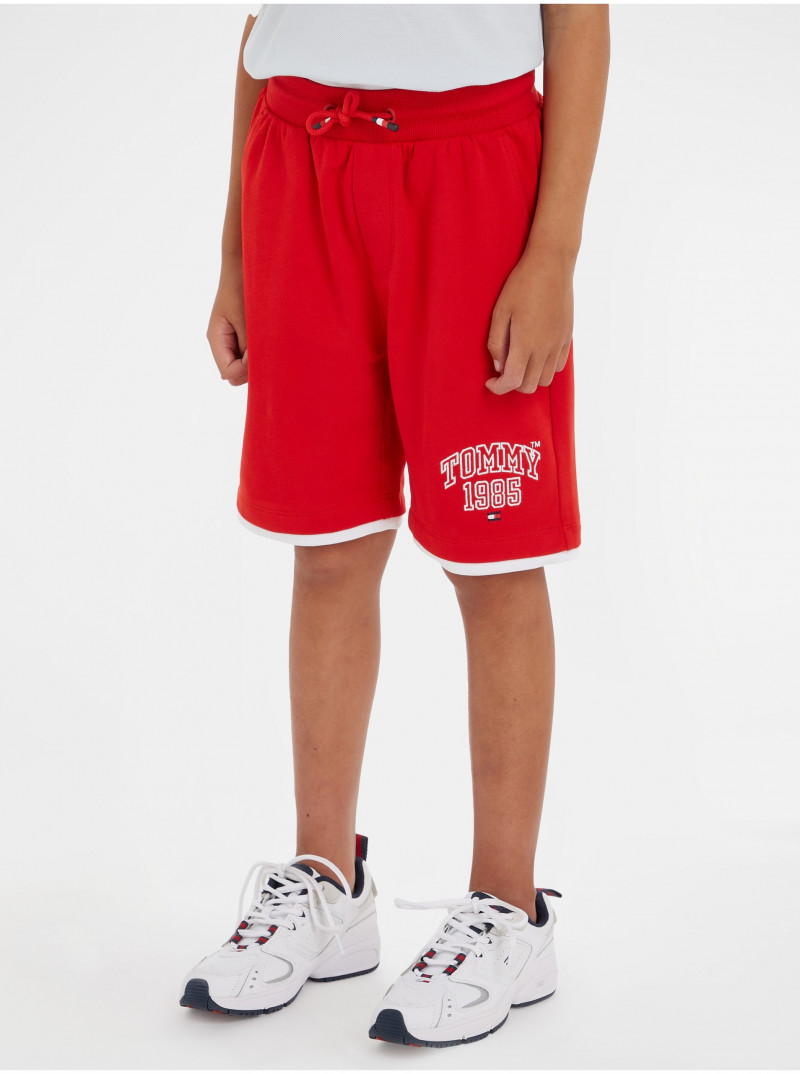 Červené klučičí kraťasy Tommy Hilfiger Tommy Varsity Sweatshorts - Kluci