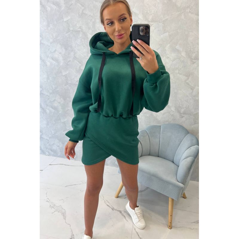 Zateplené šaty s psaníčkovým spodkem tmavě zelené barvy