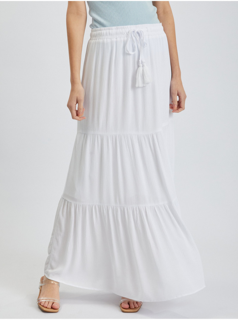 Barva: bíláStřih: rovnýDélka: dlouháZapínání: do gumySpecifikace: tkanička na stahování v paseUdržitelnost: ekologický materiálMateriál: hlavní část - 100 % viskóza LENZING™ ECOVERO™podšívka - 100 % viskózaModelka měří: 170 cmModelka má na sobě velikost: S
