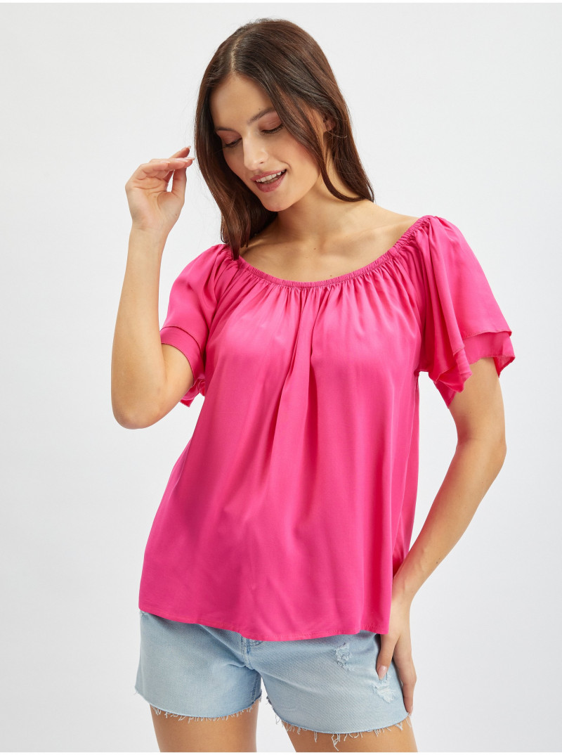 Barva: tmavě růžová Střih: comfort fit Výstřih: kulatý Rukáv: krátký Zapínání: bez zapínání Něco navíc: rukáv - volán Udržitelnost: ekologický materiál Materiál: 100 % viskóza LENZING™ ECOVERO™ Modelka měří: 168 cm Modelka má na sobě velikost: S