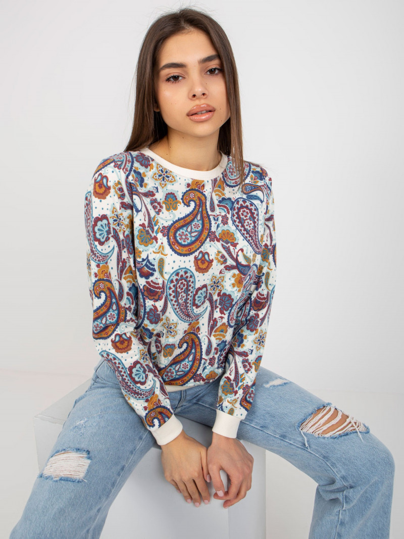 Ecru-modrá mikina s orientálními vzory bez kapuce .