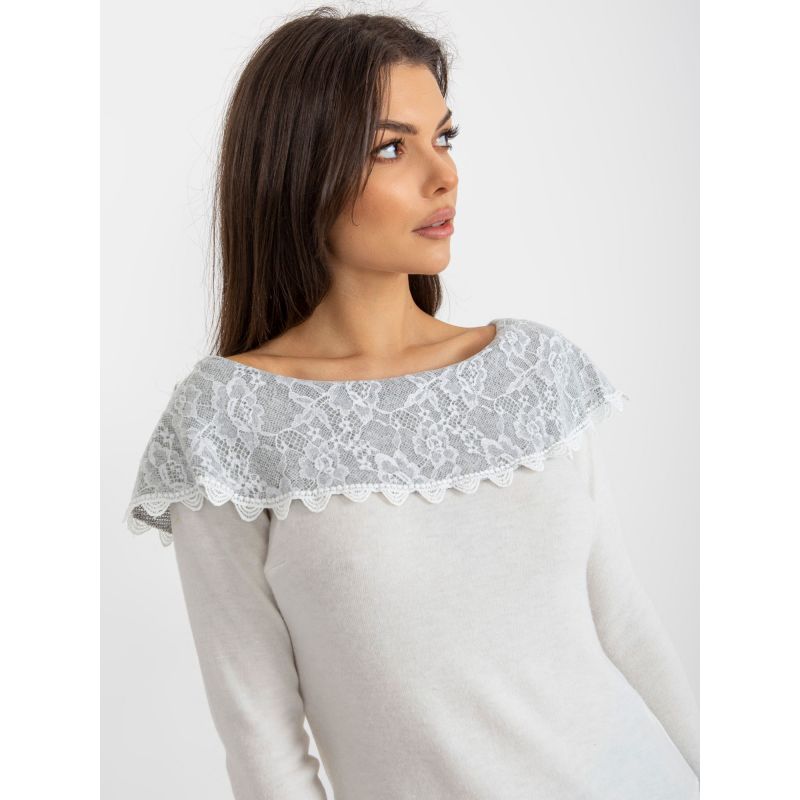 Krátká béžová a šedá halenka s odhalenými rameny .