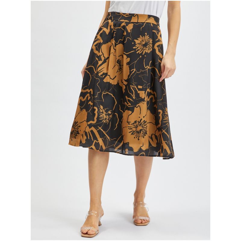 Orsay Hnědo-černá dámská květovaná saténová sukně - Dámské