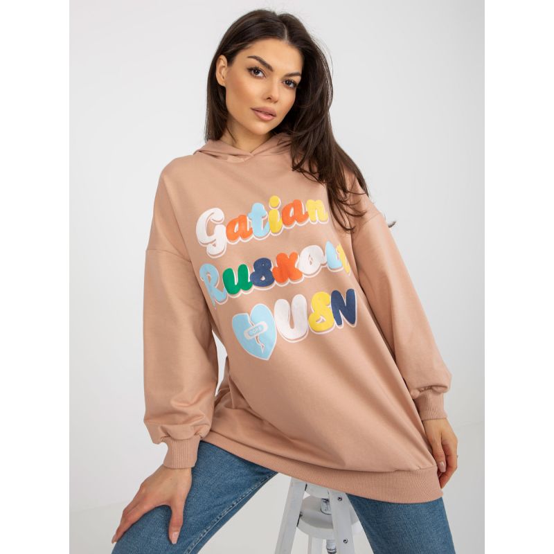 Rozměry jednovelikostní mikiny měřeny naplocho: šířka v podpaží - 68 cm, délka rukávu - 60 cm, celková délka - 80 cm.