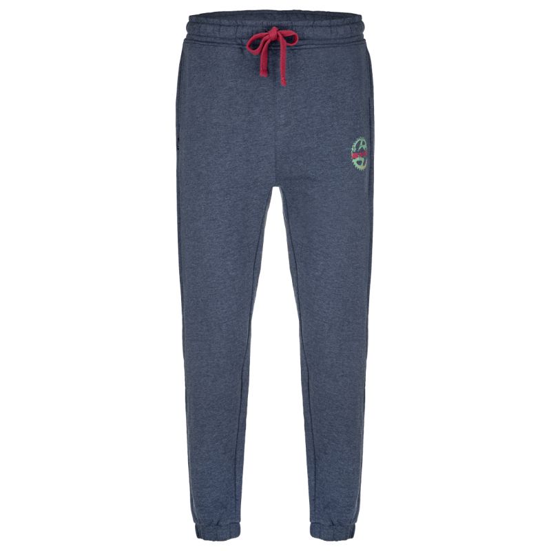 Volnočasové pánské tepláky Loap EDIKANT jsou ušity v klasickém střihu z bavlny a polyesteru. Jsou příjemné na dotek, dobře drží tvar a mačkají se méně než 100% bavlněné tepláky. Tyto žíhané tepláky mají elastický pas se stahováním na ploché tkaničky, elastický spodní okraj a dvě boční kapsy bez zipu. Na stehně jsou ozdobené decentním kulatým potiskem. Jsou ideální na lehké sportovní aktivity, cestování nebo volný čas od podzimu do jara.Elastický pas s tkaničkami. Příjemné na dotek. Dvě kapsy