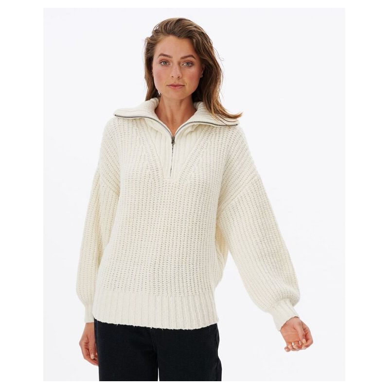 Hřejivý dámský svetr v atraktivním provedení. Má elegantní krémovou barvu a vysoký límec, který můžete dopnout ke krku. Kombinujte ho s tmavými kalhotami. Nová kolekce Rip Curl.