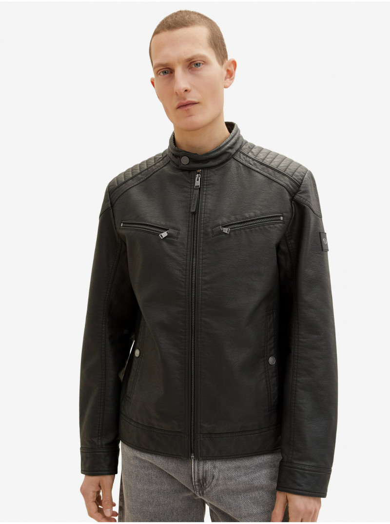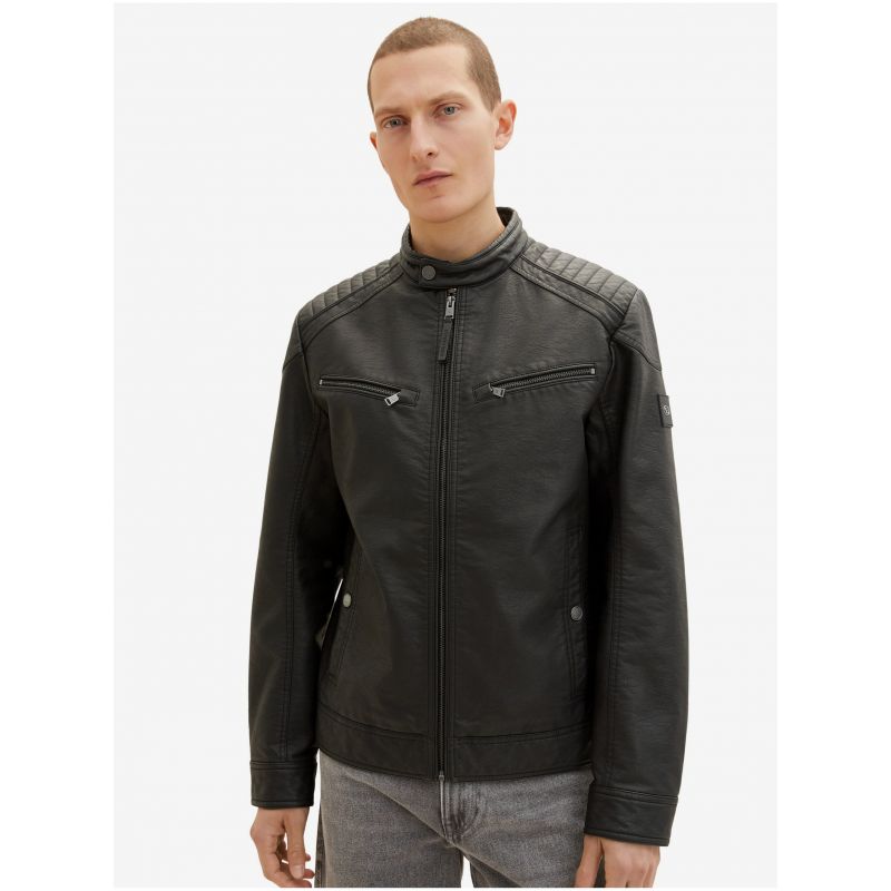 Černá pánská koženková bunda Tom Tailor - Pánské