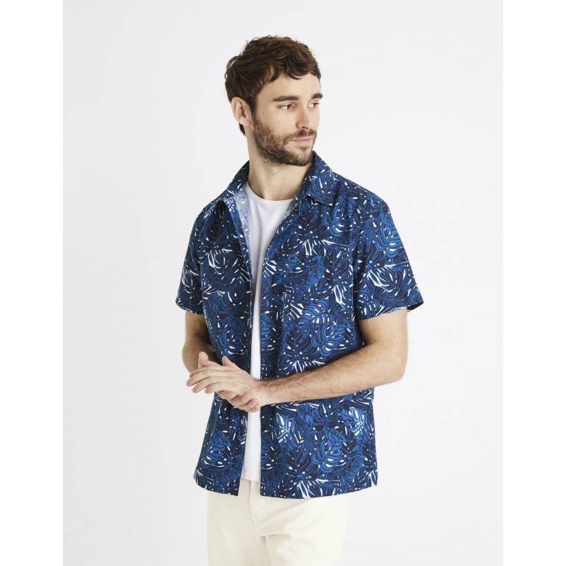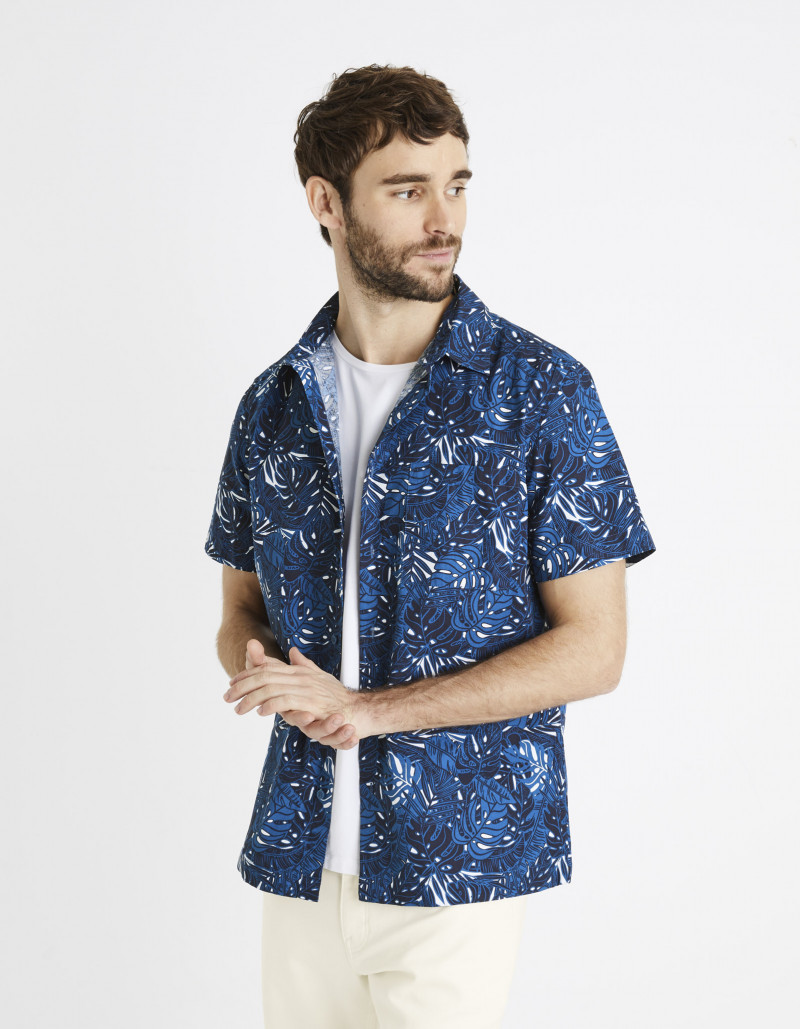 Vzorovaná bavlněná košile s krátkým rukávem. Klasický límeček a na hrudi našitá malá kapsička. Rovný střih regular.
