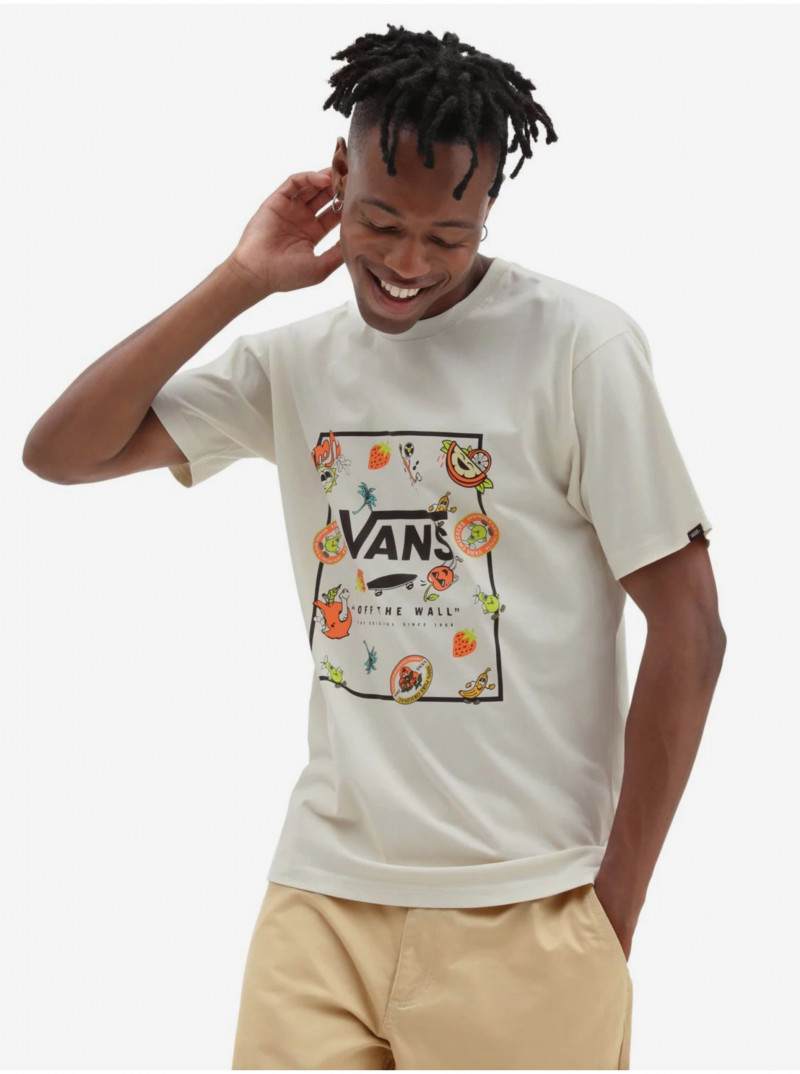 Krémové pánské tričko s potiskem VANS Mn Classic Print Box - Pánské