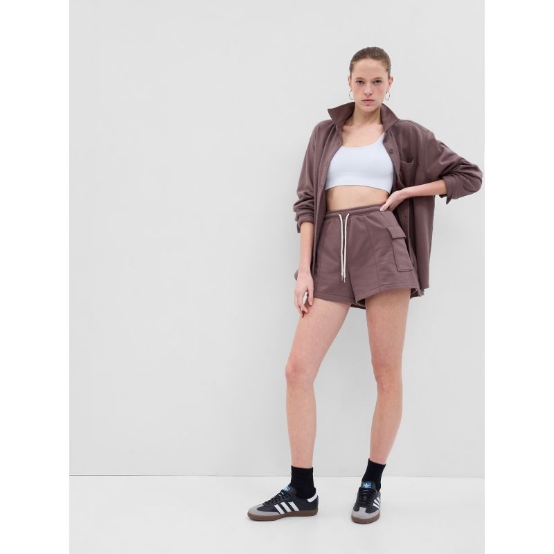 Dámské kraťasy. Pružný pas se stahovací šňůrkou. Našité velké kapsy s klopou. Vělmi měkký materiál. Jednobarevné.