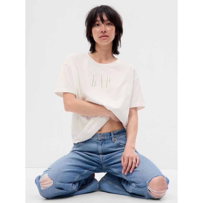 Dámské jednobarevné tričko. Logo GAP na přední straně. Krátké rukávy a kulatý výstřih. Rovný a volný střih. Zaoblený spodní lem.