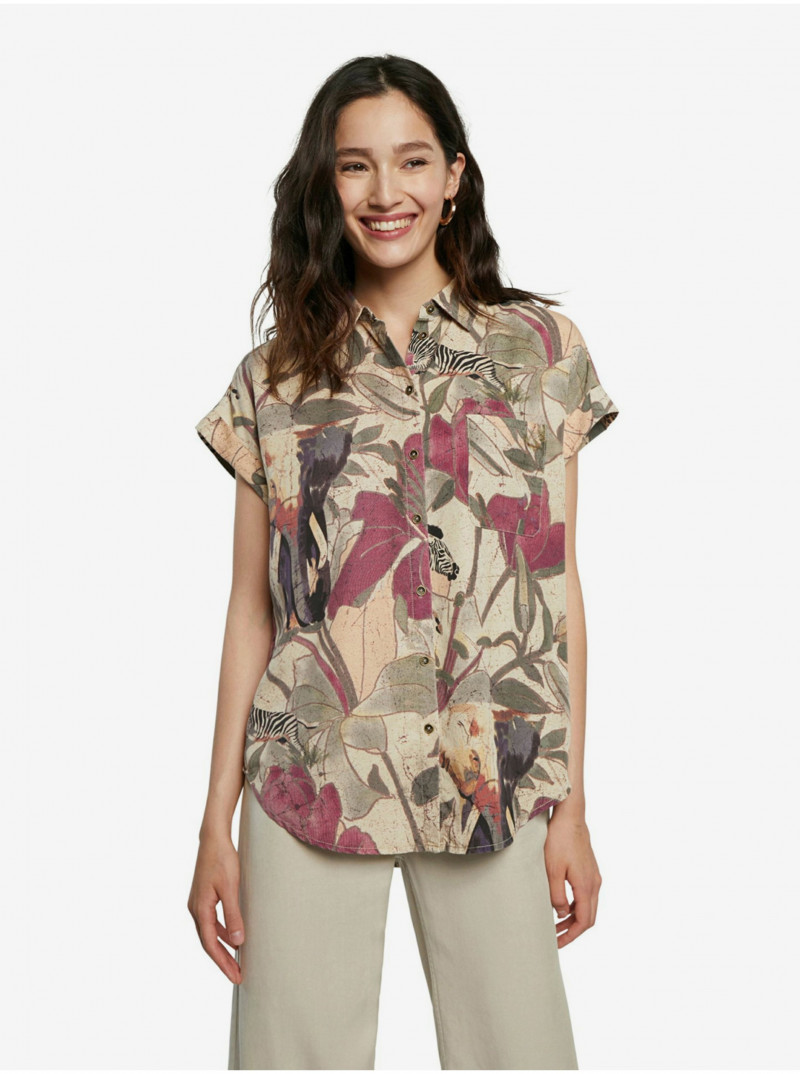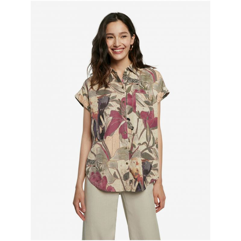 Béžová dámská vzorovaná košile Desigual Cam Etnican - Dámské