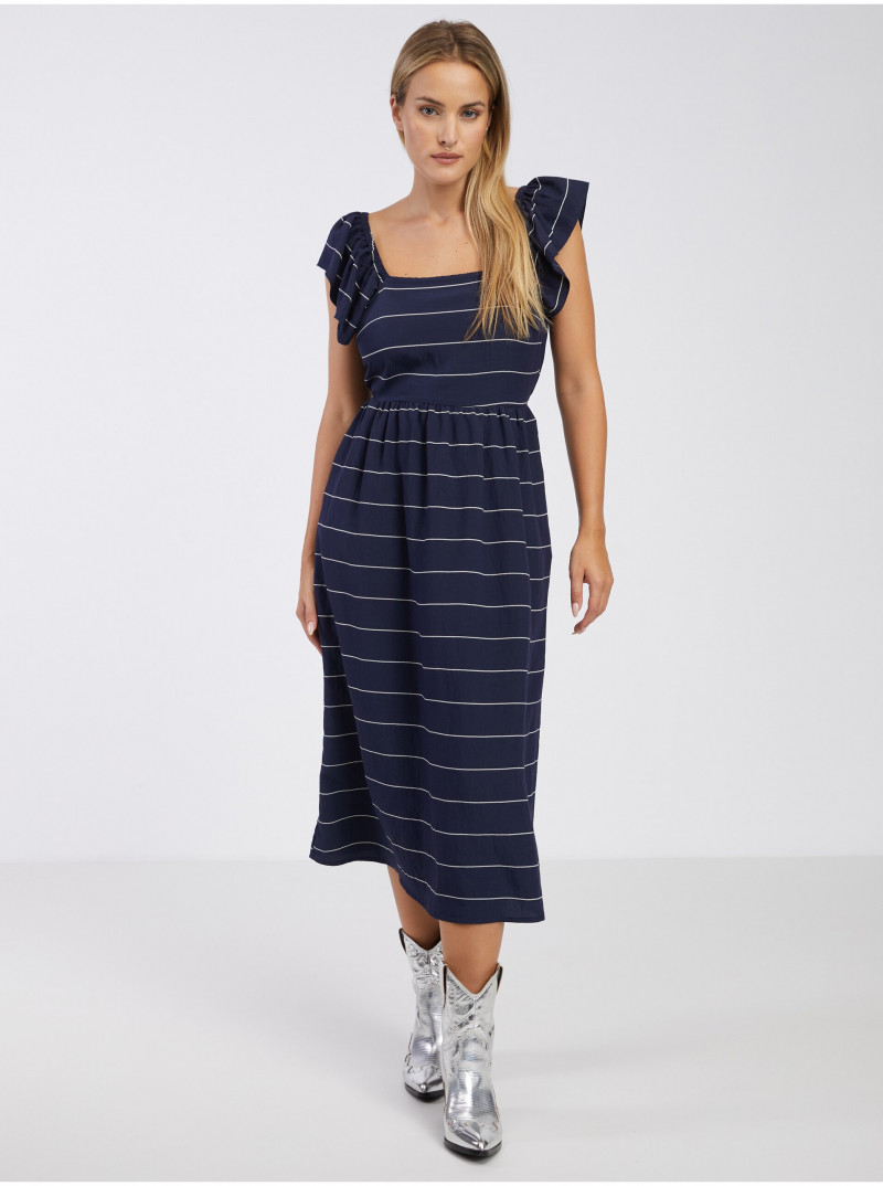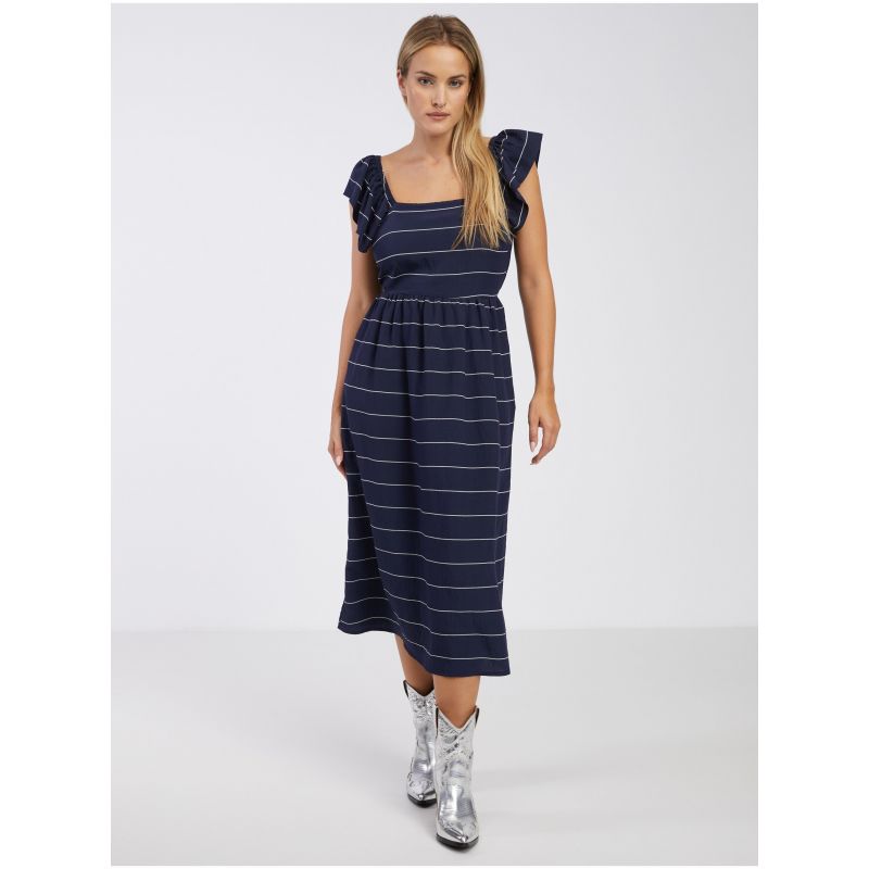 Tmavě modré dámské pruhované midišaty VILA Rita - Dámské