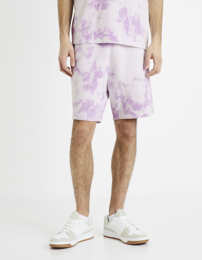 Teplákové kraťasy s batikou. Natahovací, pružné v pase a s kapsami. Našitá zadní kapsa. Bavlněné kraťasy se hodí k bílému tričku a teniskám.