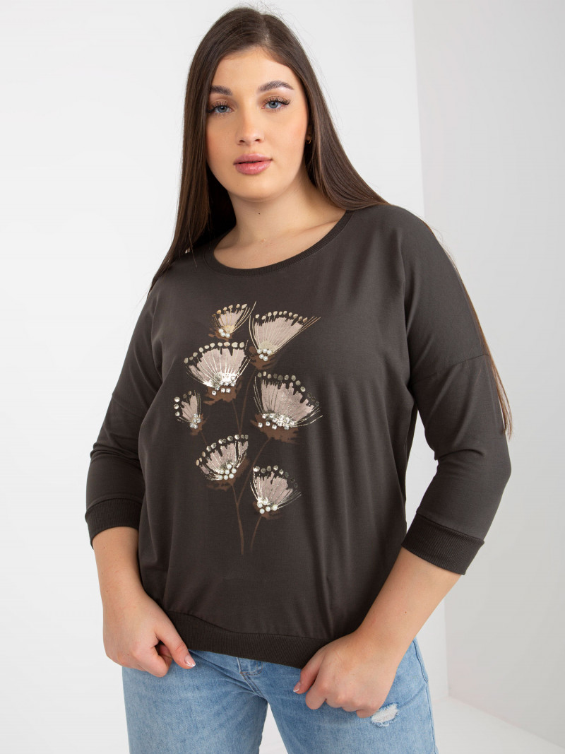 Khaki dámská halenka plus size velikosti s aplikacemi .