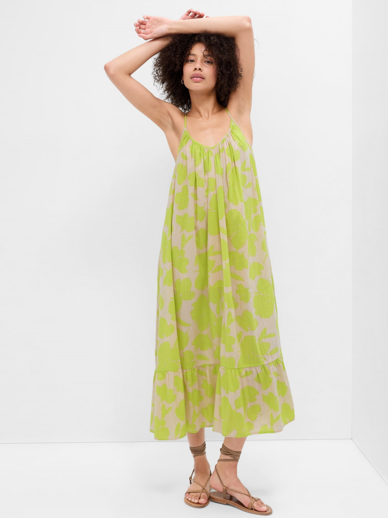 Barva: krémová Střih: áčkový Délka: dlouhá Výstřih: kulatý Rukáv: na ramínka Zapínání: za krkem, na zavazování Typ materiálu: bavlna Materiál: 100 % bavlna