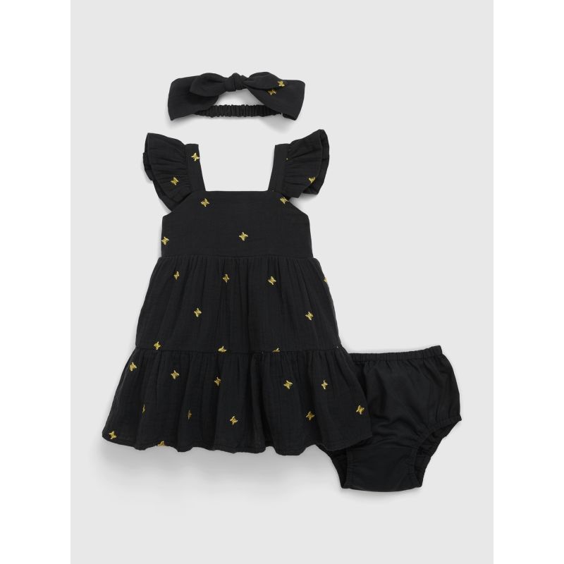 Dětské vzorované šaty. Čelenka a plenkové kalhotky. Šaty s volány. Ramínka s volánky. Čelenka s mašlí.
