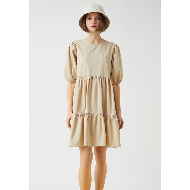 Koton Mini Poplin Dress Balloon Sleeve Flounce Crew Neck Cotton