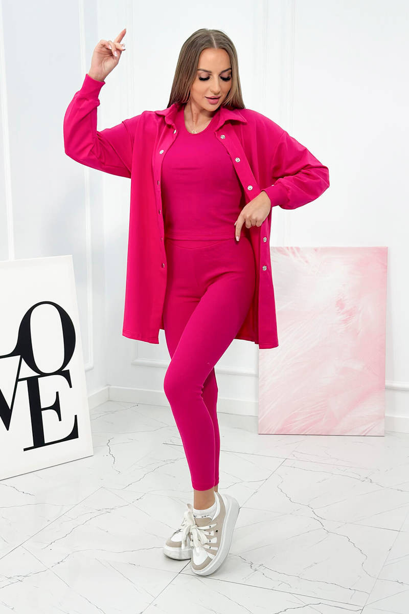 Představujeme vám moderní a stylový třídílný set, který se skládá z mikiny s druky, topu a žebrovaných legín. Tato sada dokonale kombinuje pohodlí a módní vzhled a vytváří mimořádně atraktivní a funkční kombinaci. Mikina s cvočky je podstatou stylu, vyrobená z měkkého materiálu, který zajišťuje pohodlí. Volný střih umožňuje volnost pohybu, ideální pro trénink i každodenní použití. Top, který je součástí této sady, je perfektním doplňkem mikiny. Vyrobeno z elastického materiálu, zajišťuje dokonalé padnutí a zdůrazňuje ženskou postavu. Jeho žebrovaný vzor dodává nádech modernosti a stylu. Žebrované legíny jsou skvělou volbou pro aktivní ženy. Jejich elastický materiál zaručuje plnou svobodu pohybu a pohodlí. Žebrovaný vzor jim dodává jedinečný vzhled, který se odlišuje od ostatních typických legín. Tato kompletní sada kombinuje pohodlí, styl a funkčnost a vytváří perfektní volbu pro ty, kteří ocení módní vzhled, aniž by museli obětovat pohodlí. Bez ohledu na to, zda jej hodláte nosit při tréninku nebo chcete vypadat skvěle každý den, tento set jistě splní vaše očekávání a umožní vám cítit se sebejistě a stylově v každé situaci. Velikost je univerzální a bude vhodná pro dámy velikosti S a M.