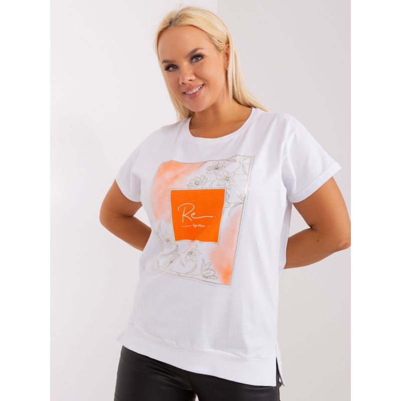 Bavlněná halenka větší velikosti v bílé a oranžové barvě