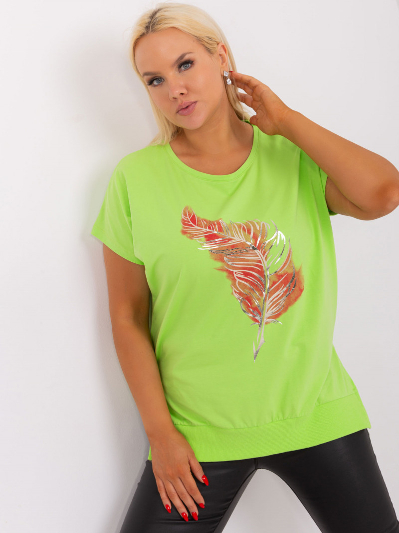 Světle zelená halenka větší velikosti s bočními rozparky .