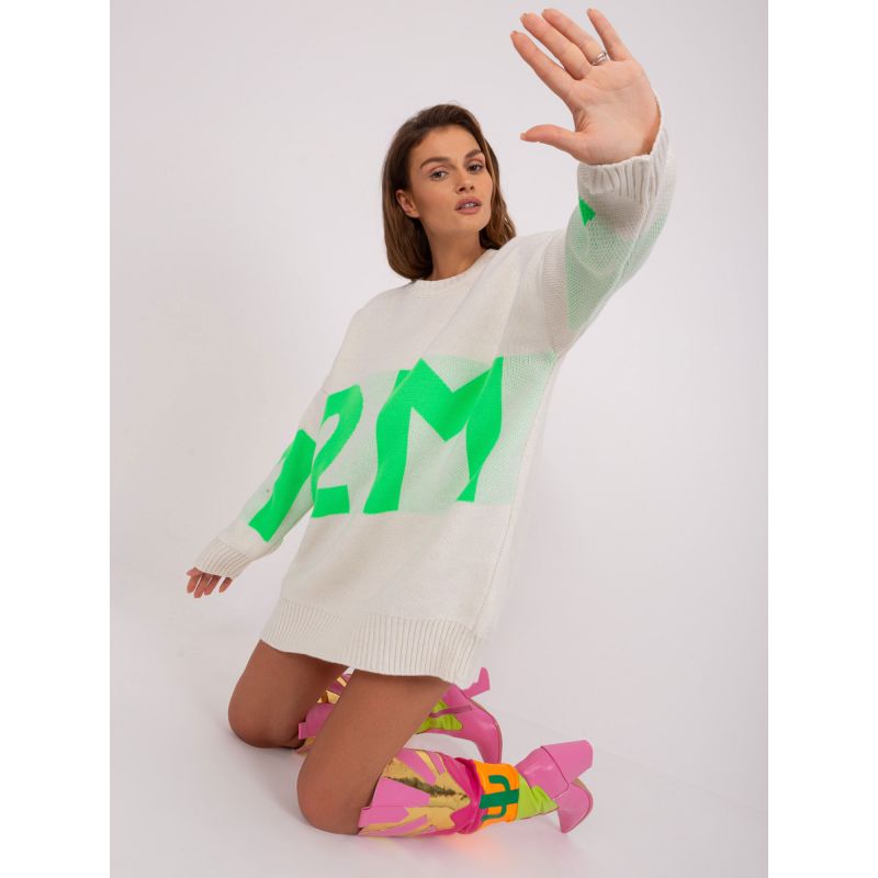 Ecru dlouhý oversize svetr s vlnou RUE PARIS .