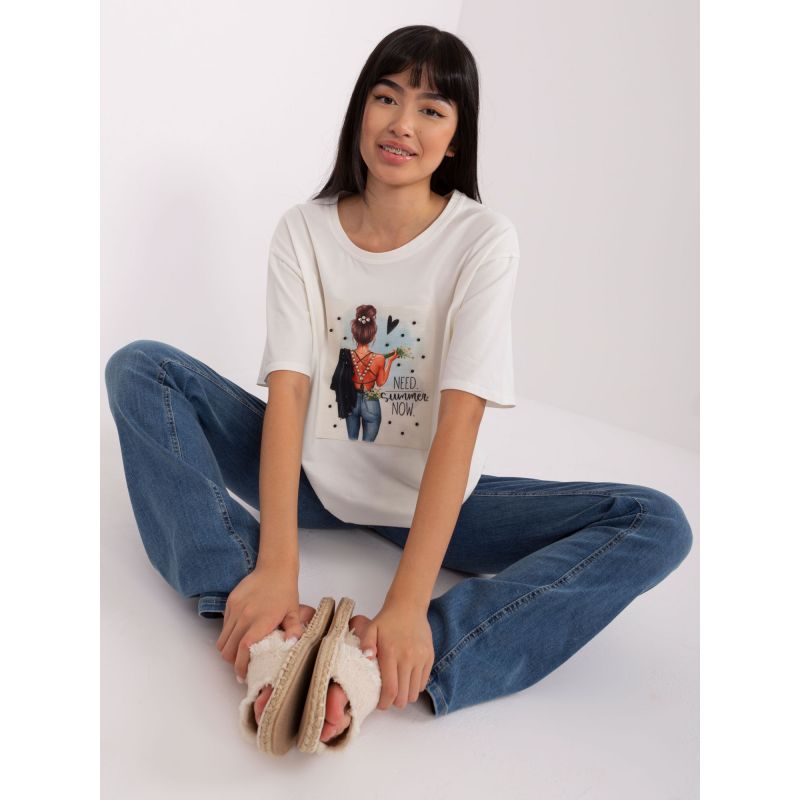 Ecru bavlněné tričko s potiskem .