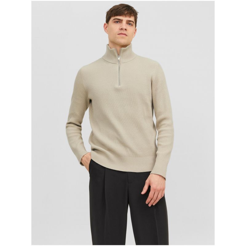 Béžový pánský žebrovaný svetr Jack & Jones Perfect - Pánské
