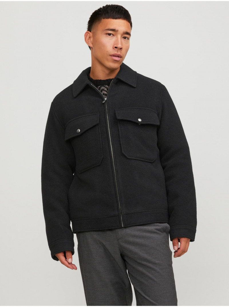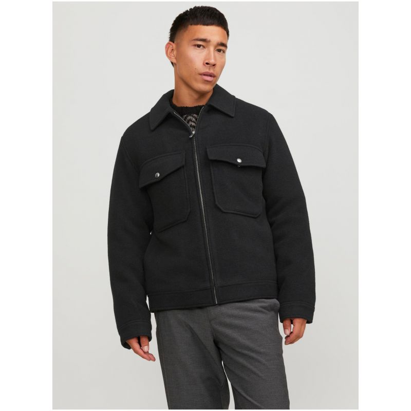 Černá pánská bunda s příměsí vlny bunda Jack & Jones Baxter - Pánské