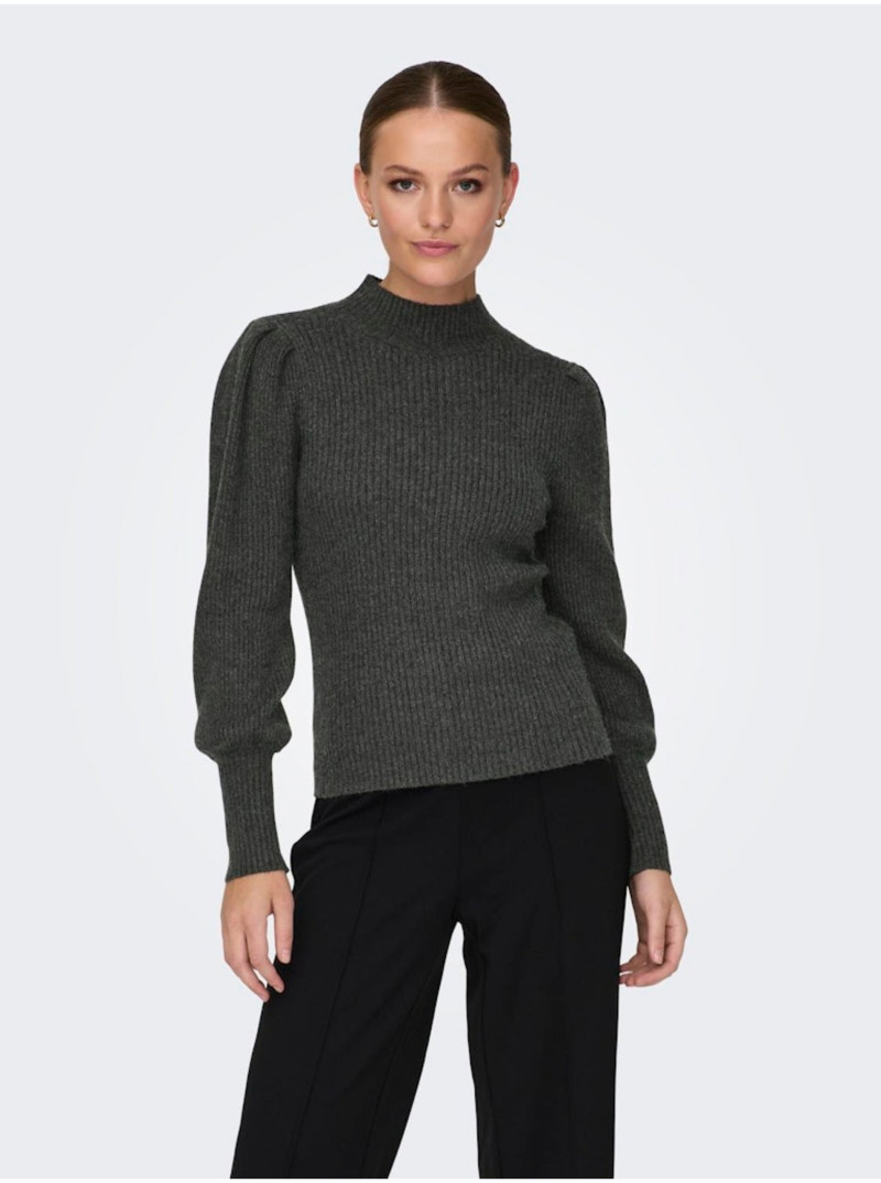 Tmavě šedý dámský žebrovaný svetr ONLY Katia - Dámské