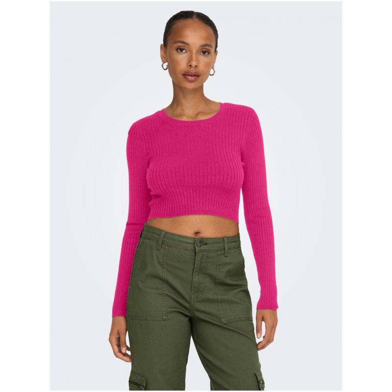Tmavě růžový dámský zkrácený žebrovaný svetr ONLY Karol - Dámské