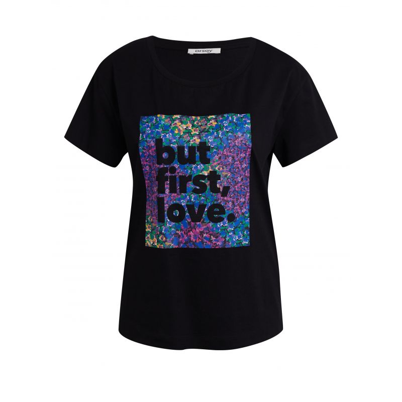 Barva: černáVzor: s potiskemStřih: regular fitVýstřih: kulatýRukáv: krátkýZapínání: bez zapínáníMateriál: 100 % bavlna