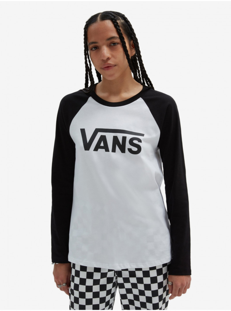 Černo-bílé dámské tričko s dlouhým rukávem VANS Flying - Dámské