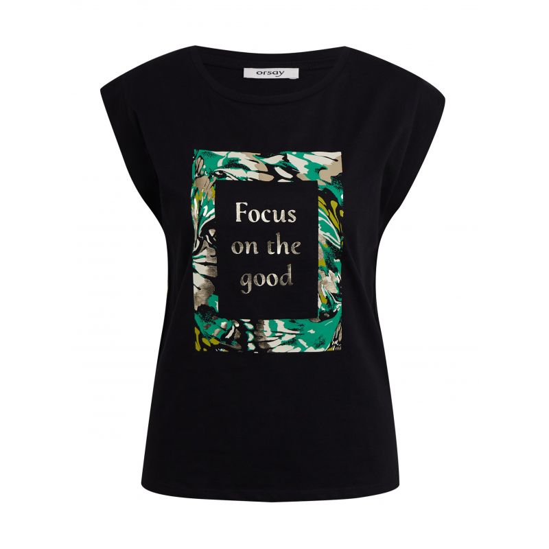 Barva: černáVzor: s potiskemStřih: regular fitVýstřih: kulatýRukáv: krátkýZapínání: bez zapínáníMateriál: 100 % bavlna