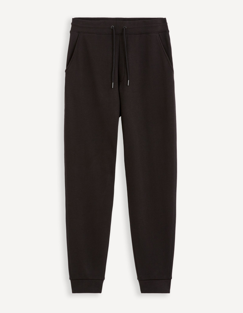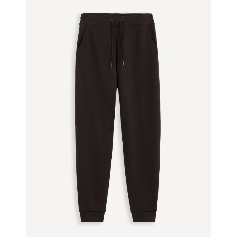 Jednobarevné tepláky s pružným pasem a stahovací tkaničkou. Falešný poklopec. Přední šikmé kapsy. Dlouhé nohavice s pružným nápletem. Na zadní straně našitá kapsa.