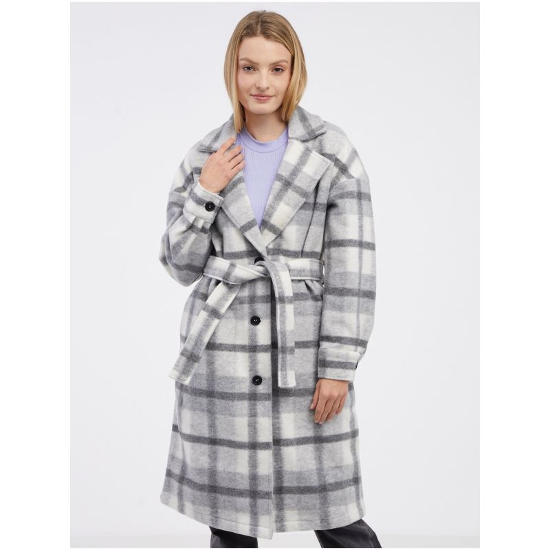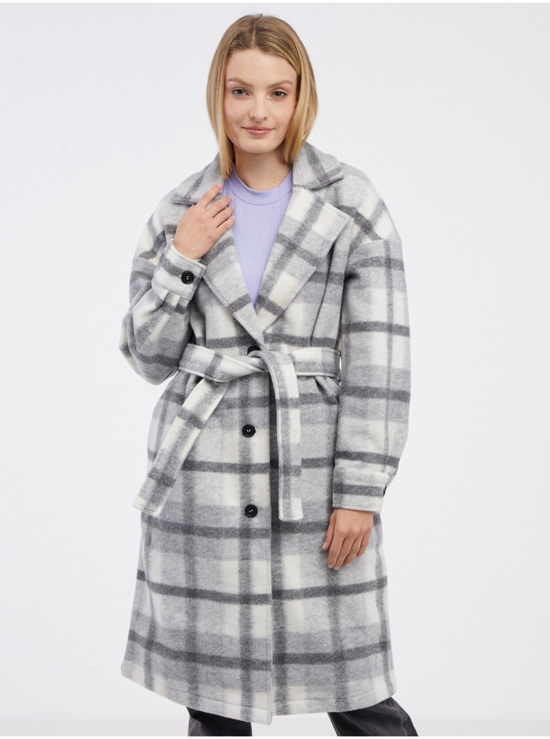 Světle šedý dámský kostkovaný kabát Noisy May Jonas - Dámské