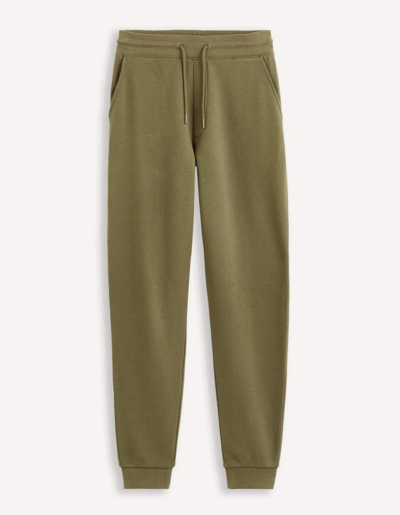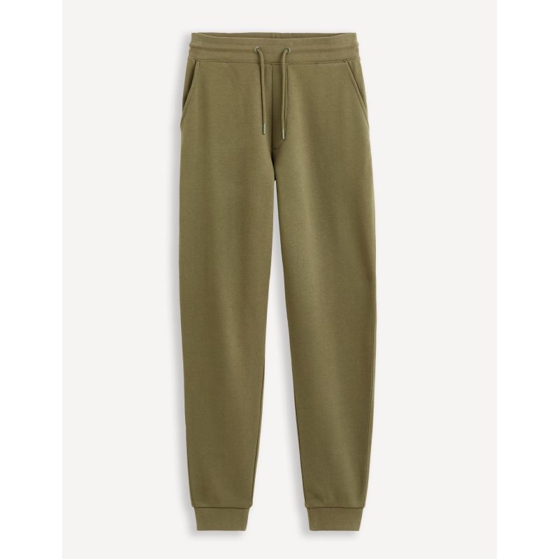 Sportovní jogging tepláky. Pružný pas se stahovací šňůrkou. Šikmé boční kapsy. Dlouhé nohavice s náplety.