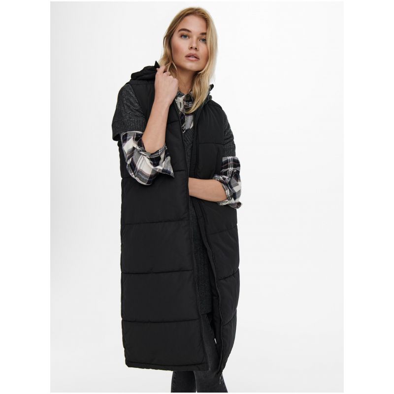 Černá dámská dlouhá prošívaná vesta ONLY Alina - Dámské