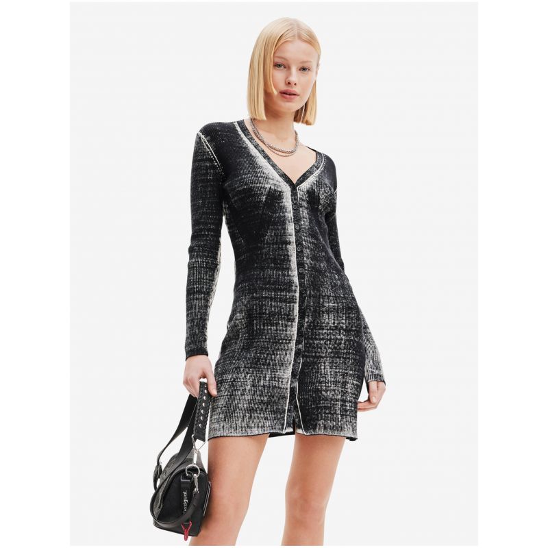 Šedo-černé dámské šaty Desigual Asturias - Dámské