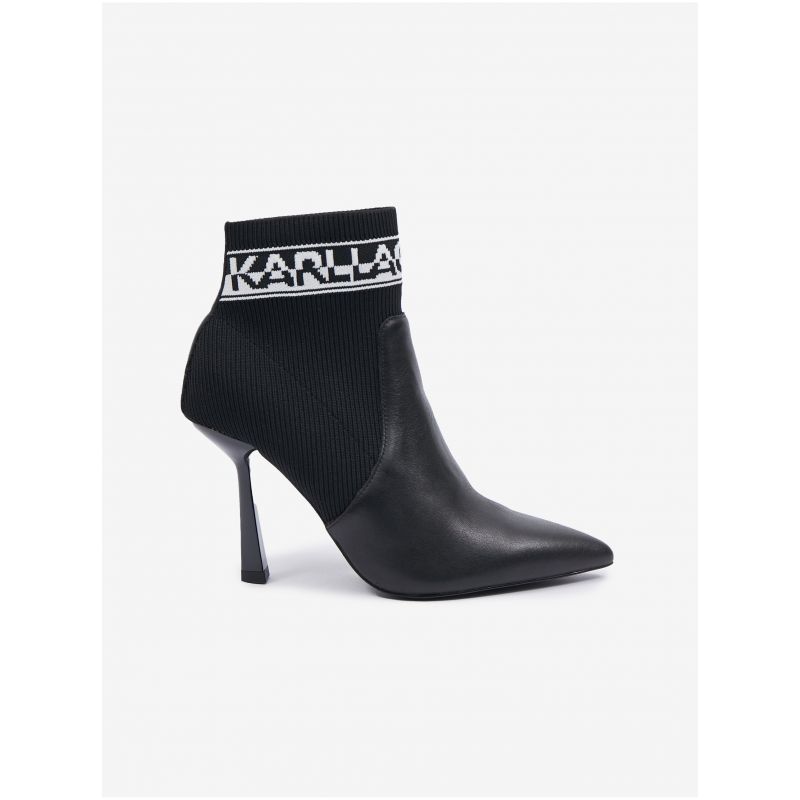 Karl Lagerfeld Černé dámské kotníkové boty na podpatku s koženými detaily KARL LA - Dámské