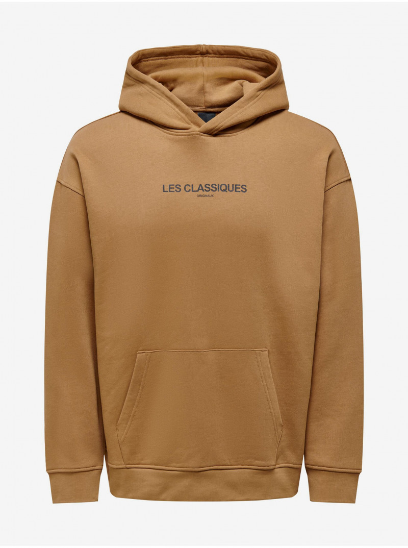 Hnědá pánská mikina s kapucí ONLY & SONS Les - Pánské